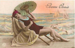 In loc de plaja, azi am mers la biblioteca. Ne tinem de promisiune si scormonim prin ziare vechi. Vrem sa va aratam ca si buncii faceau plaja fara costum. Cei mai cu avuti, mergeau vara la mare trageau la hoteluri elegante, impachetau rochii cu broderii complicate si seara isi dadeau randez-vous la Casino. Dimineata la prima ora, dupa cafeaua cu lapte, luau cura de aer si soare cu multa dezinvoltura si fara costum.